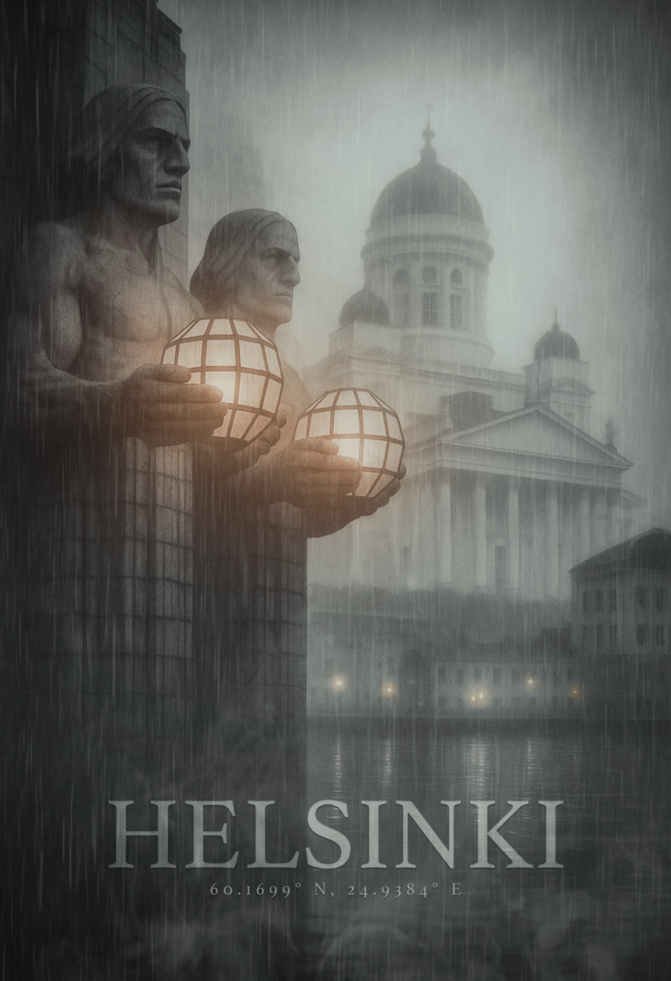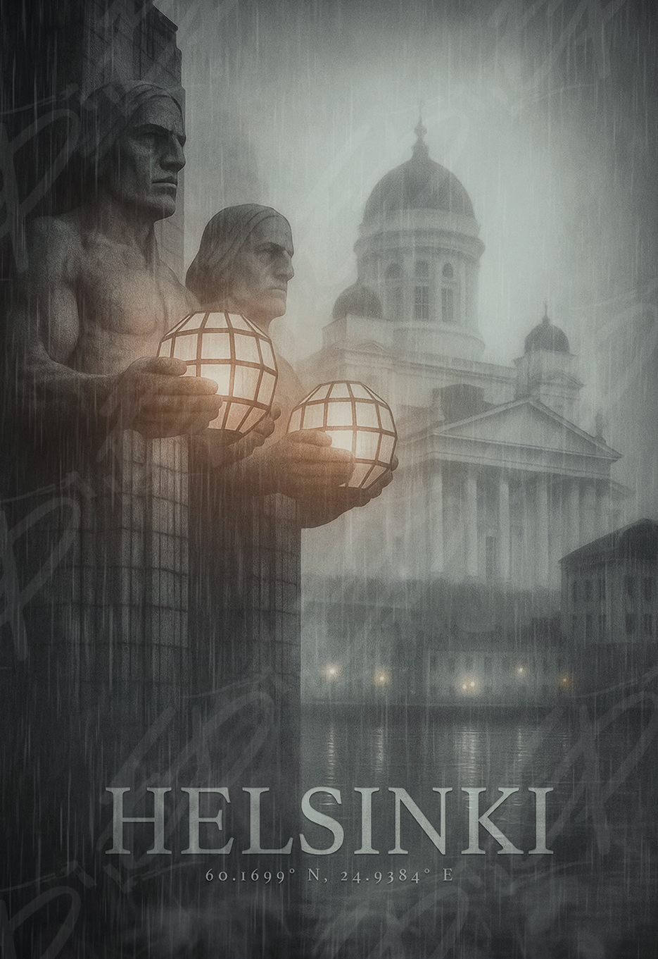 Elokuvamainen, dramaattinen taideteos, joka tulkitsee Helsingin ikoniset rakennukset ja kaupungin tarinan ainutlaatuisella tavalla. Saatavilla vain EdittiPajasta – jokainen juliste on uniikki osa kokoelmaa.